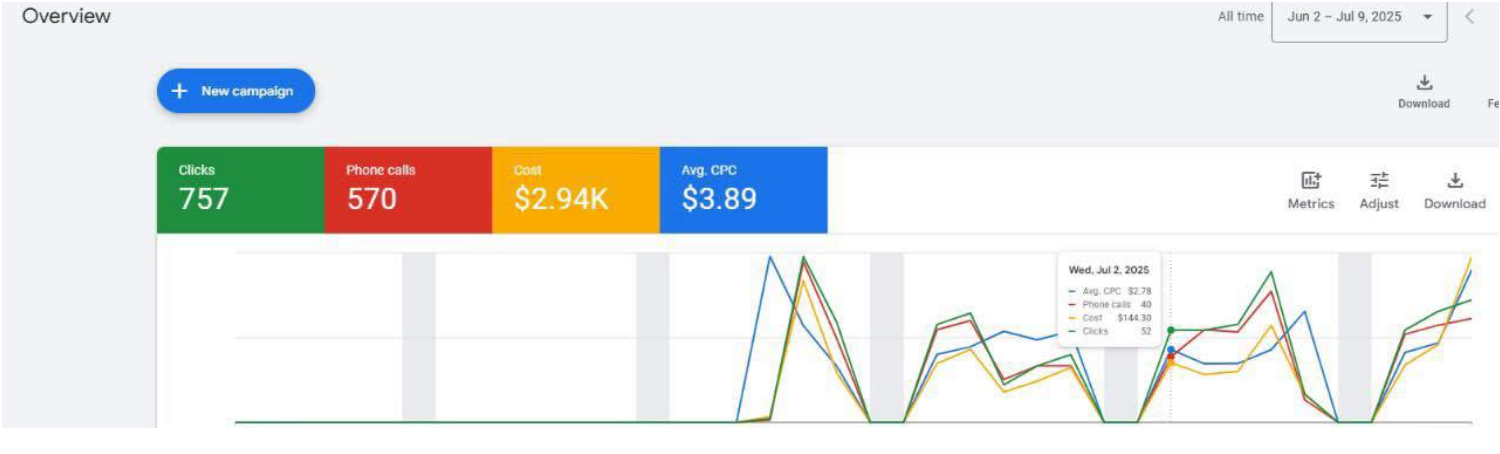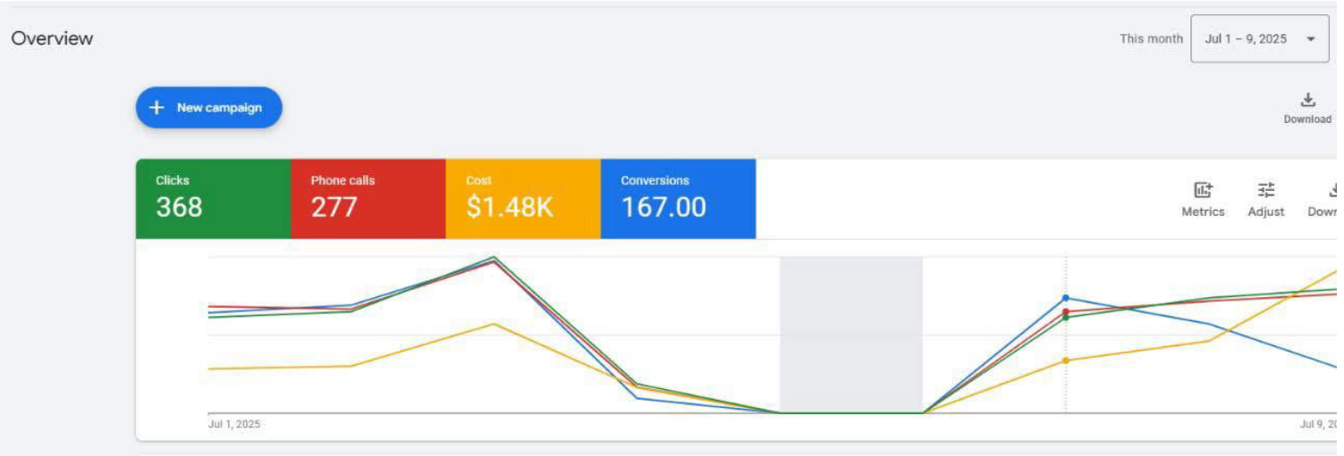 - •277 phone calls + 167 website conversions, $1.48K spend