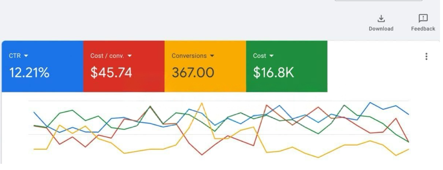 Throughout the campaign, I continuously monitored performance, optimized bids, paused underperforming keywords, and reallocated budget toward high-performing services. The results were strong: the campaign generated over 360 conversions at a competitive cost per lead, with a 12.21% CTR, demonstrating that the strategy was attracting highly relevant users ready to take action and driving real business growth for RC Custom Landscapes.